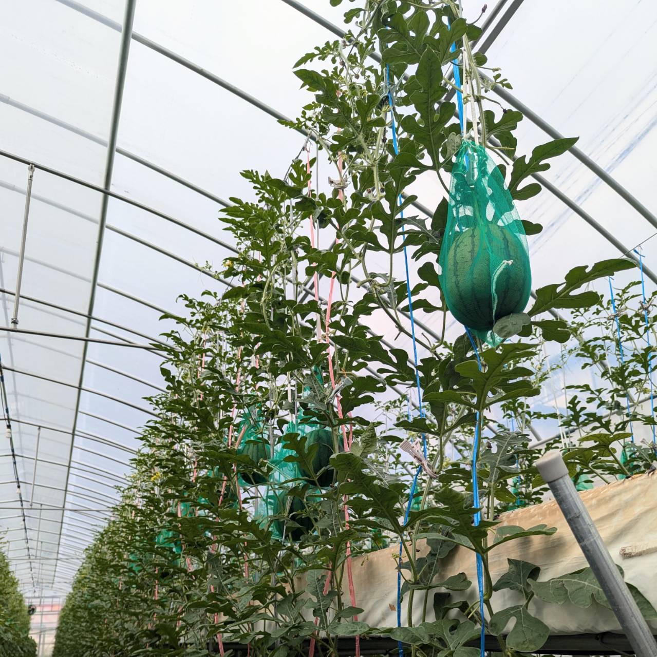 高設の隔離ベッドを利用した空中栽培スイカのご予約を承ります。